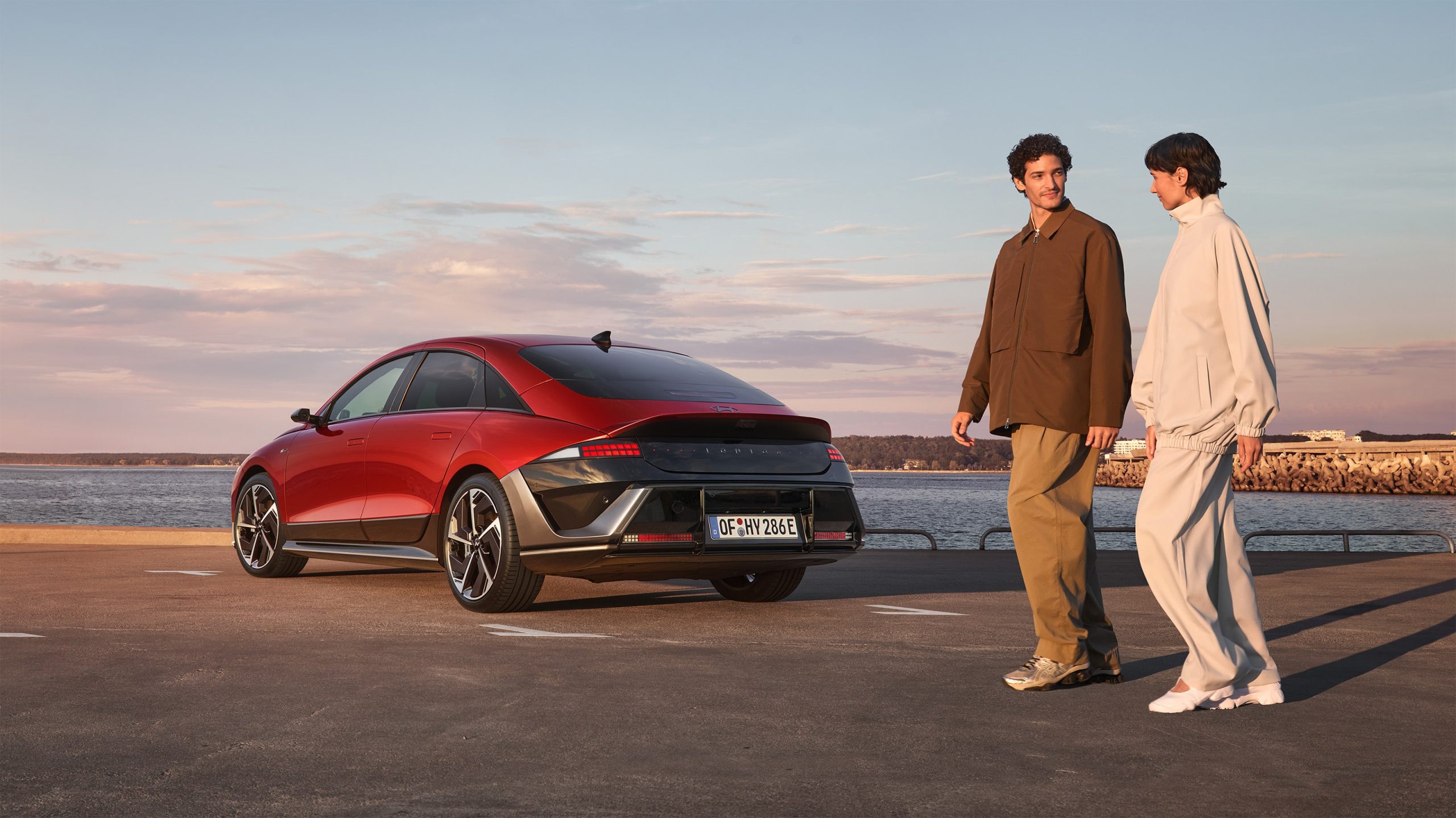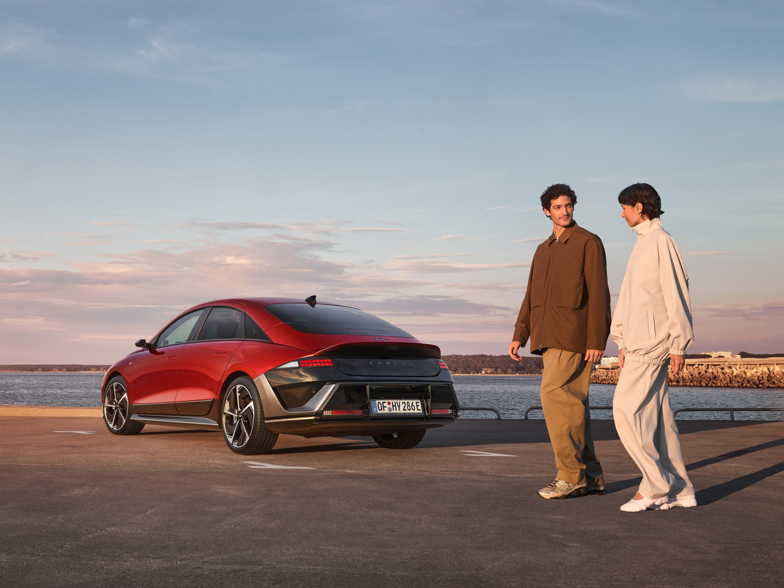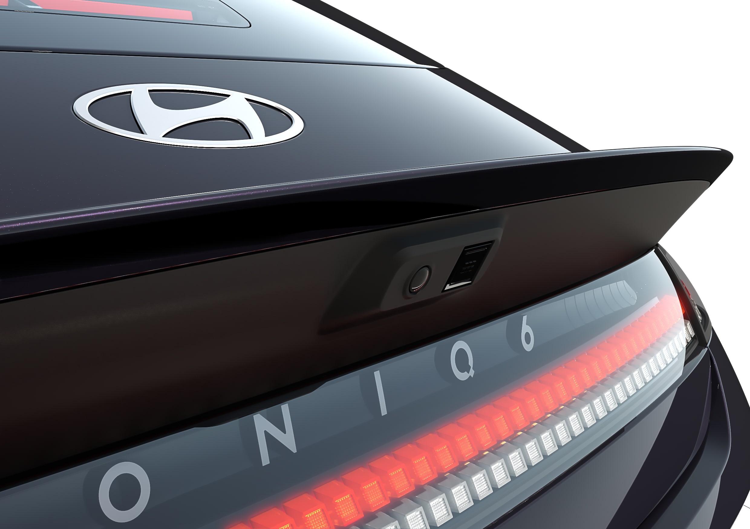 Az új IONIQ 6 esetében eltávolítottuk az eredeti modell hangsúlyos felső légterelőjét, ami még letisztultabb, még elegánsabb sziluettet eredményezett. A kacsafarok-légterelőt meghosszabbítottuk, ezzel megőrizve az autó áramlástani jellemzőit.